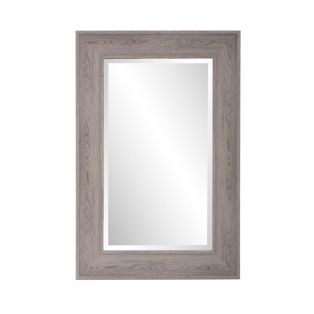 Warm Gray Faux Wood Beveled Rectangular Mirror