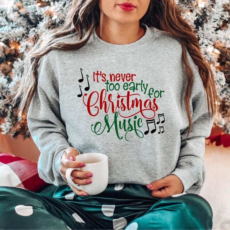 It's Never Too Early for Christmas Music Sweatshirt, Christmas Musician Hoodie, Music Lover Sweatshirt For Holiday, Unisex Music Teacher Gift Hoodie, Gift Sweatshirt For Musician.