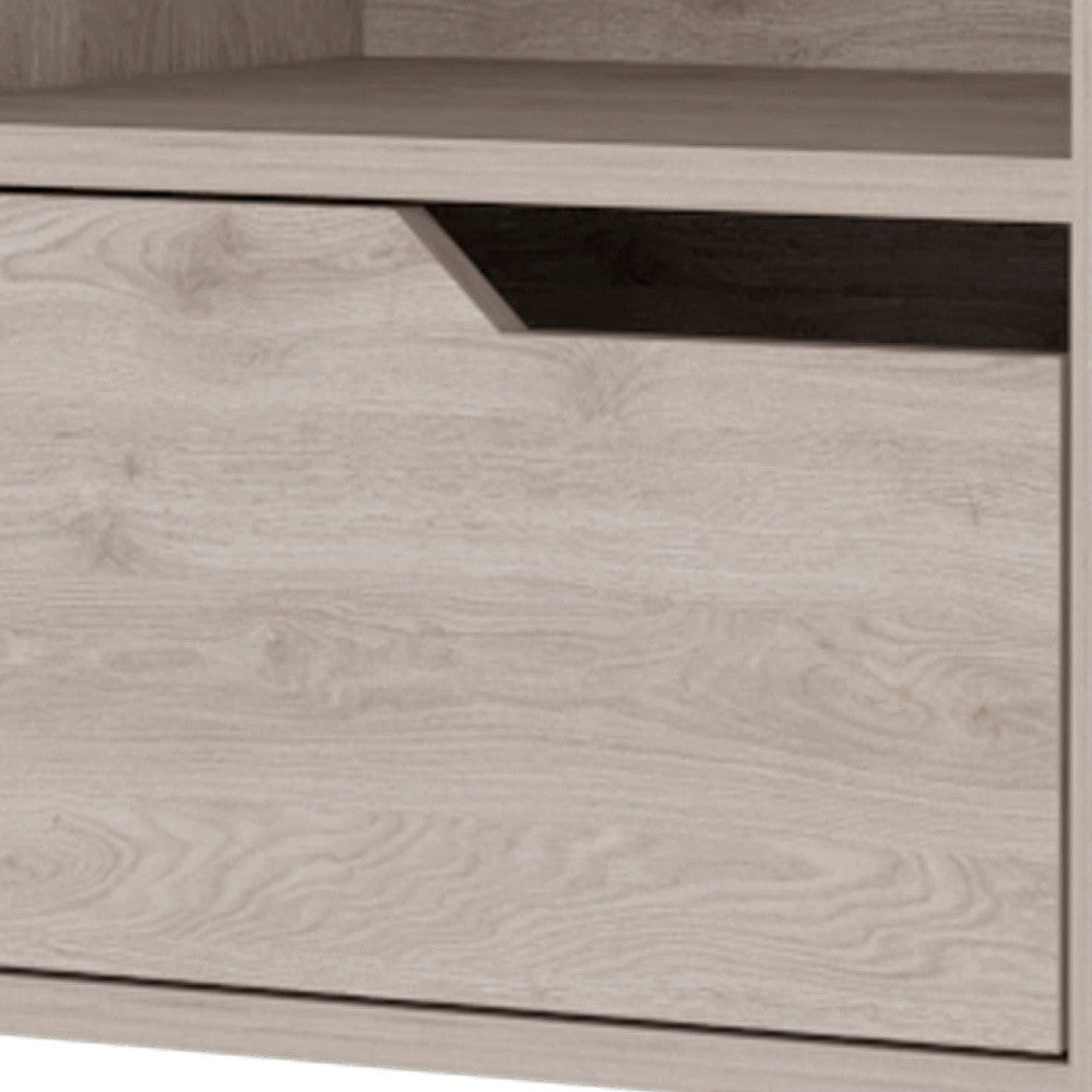 13" Beige One Drawer Faux Wood Floating Nightstand