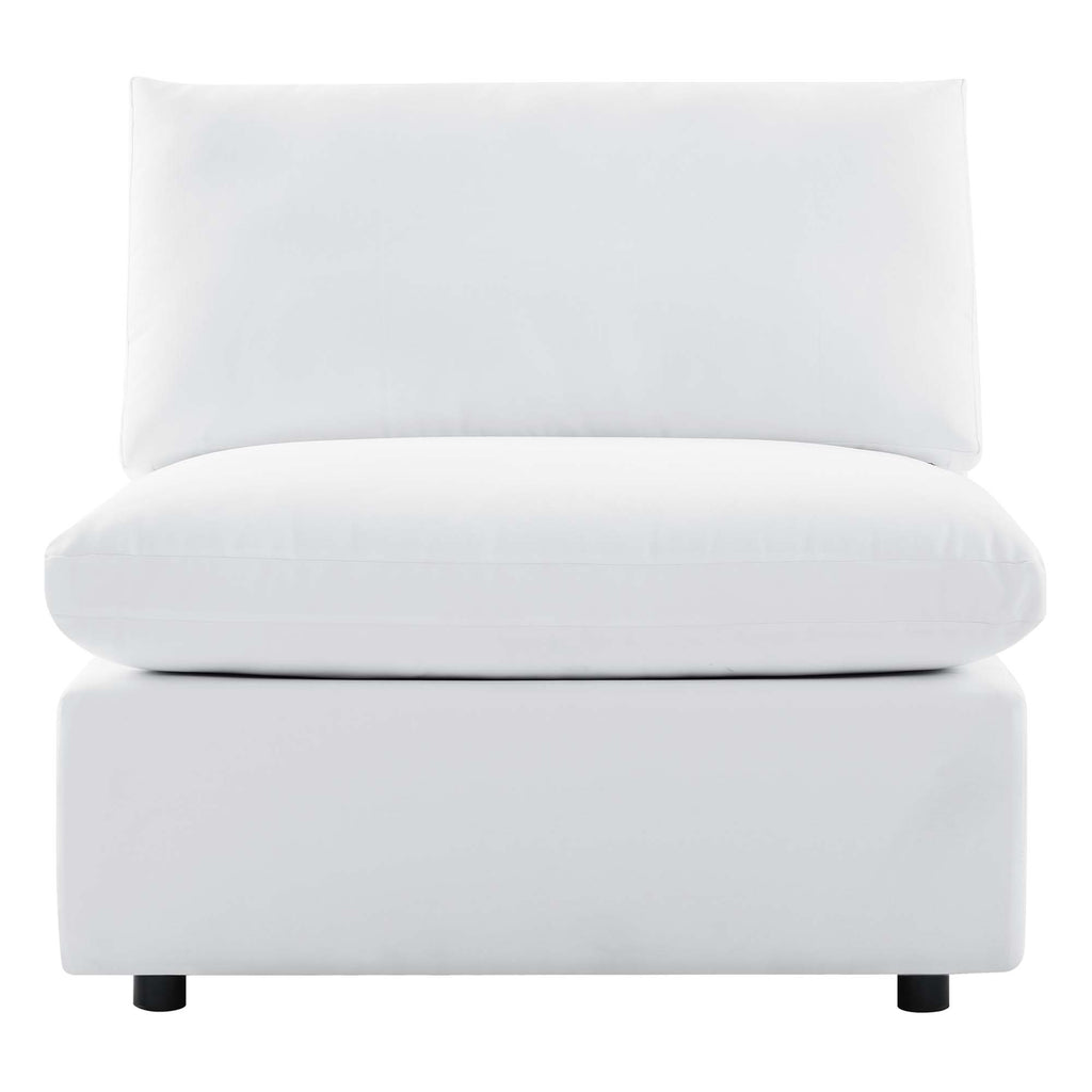 A haven for cozy relaxation right in your own backyard, Commix features plush comfort, a clean-lined design, and a spacious profile that makes an attractive statement on the porch, patio, or by the poolside. Made for sprawling out in the sun or curling up with a good book, this patio chair features generously padded cushions covered in water-repellent and UV-resistant Sunbrella� fabric covers making them ideal for your outdoor space. This outdoor armless chair features an all-weather construction with a powder-coated aluminum frame and non-marking foot caps to protect flooring surfaces. Beckoning guests to sit and stay a while, the Commix Outdoor Patio Collection is perfect for al fresco entertaining or lounging amidst warm weather. Armless Chair Weight Capacity: 300 lbs. Set Includes: One - Commix Sunbrella� Armless Chair