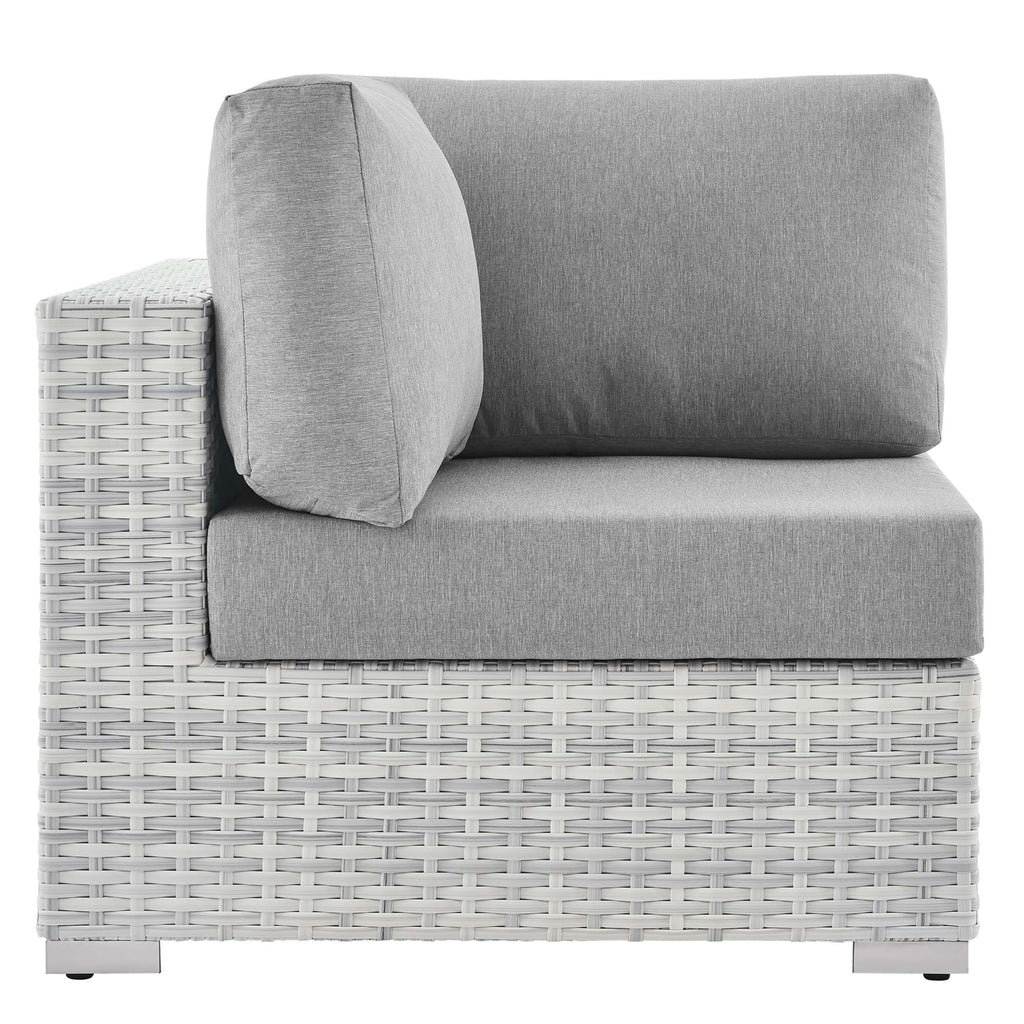 Gather stages of sensitivity with the Convene Outdoor Sectional series. Made with a synthetic rattan weave and a powder-coated aluminum frame, Convene is a versatile corner armchair from an outdoor collection that shifts and combines according to the spontaneous needs of the moment. Outfitted with all-weather fabric cushions, the Convene Corner Chair leaves a positive impression on friends and family while enhancing your patio, backyard, or poolside retreat with palpable distinction. Set Includes: One - Convene Corner Chair