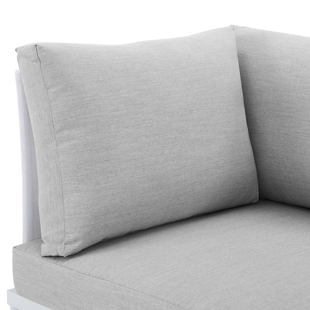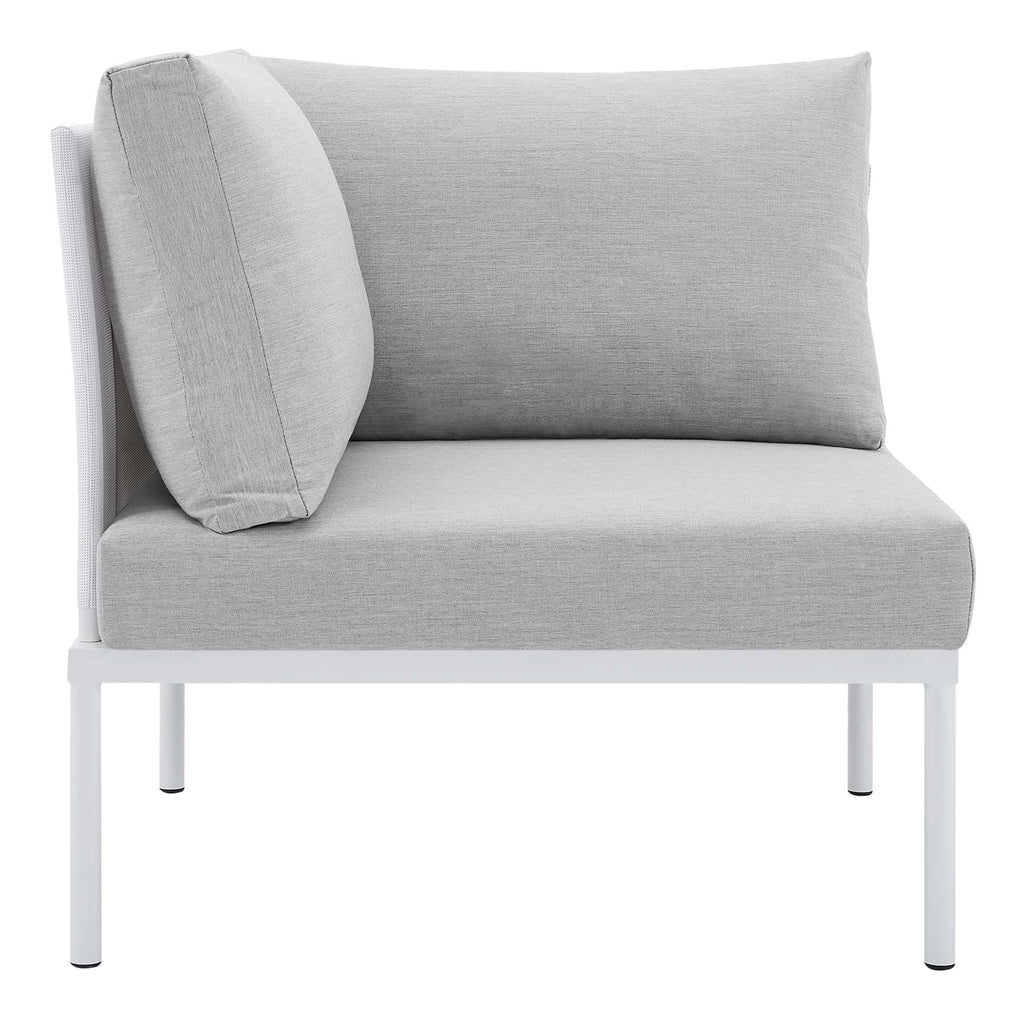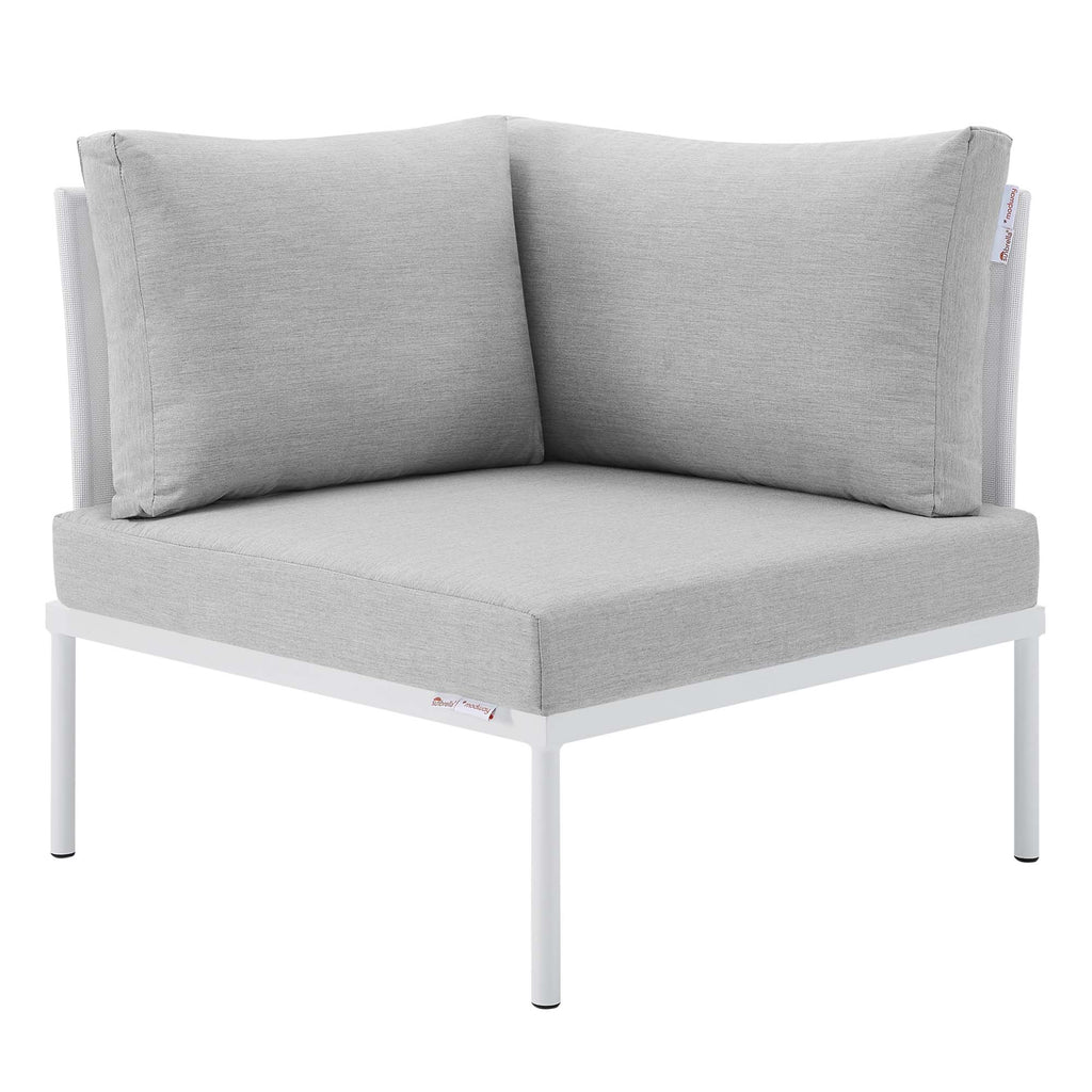 Engage life with Harmony Outdoor Patio Corner Chair. Enjoy casual conversation under the open sky with an all-weather waterproof outdoor sofa chair from a versatile furniture set that delivers an exceptional outdoor porch, patio, balcony or garden experience. An exceptional modern outdoor furniture set that exceeds expectations, Harmony Patio Corner Chair comes with soft and durable polyester Textiline� panels, square powder coated aluminum bases, Sunbrella� cushions, and non-marking foot caps. An outside sectional corner chair that arranges according to the spontaneous needs of your guests, set your sights on open and inspired moments with the Harmony Outdoor Patio Collection. Set Includes: One - Harmony Outdoor Patio Corner Chair