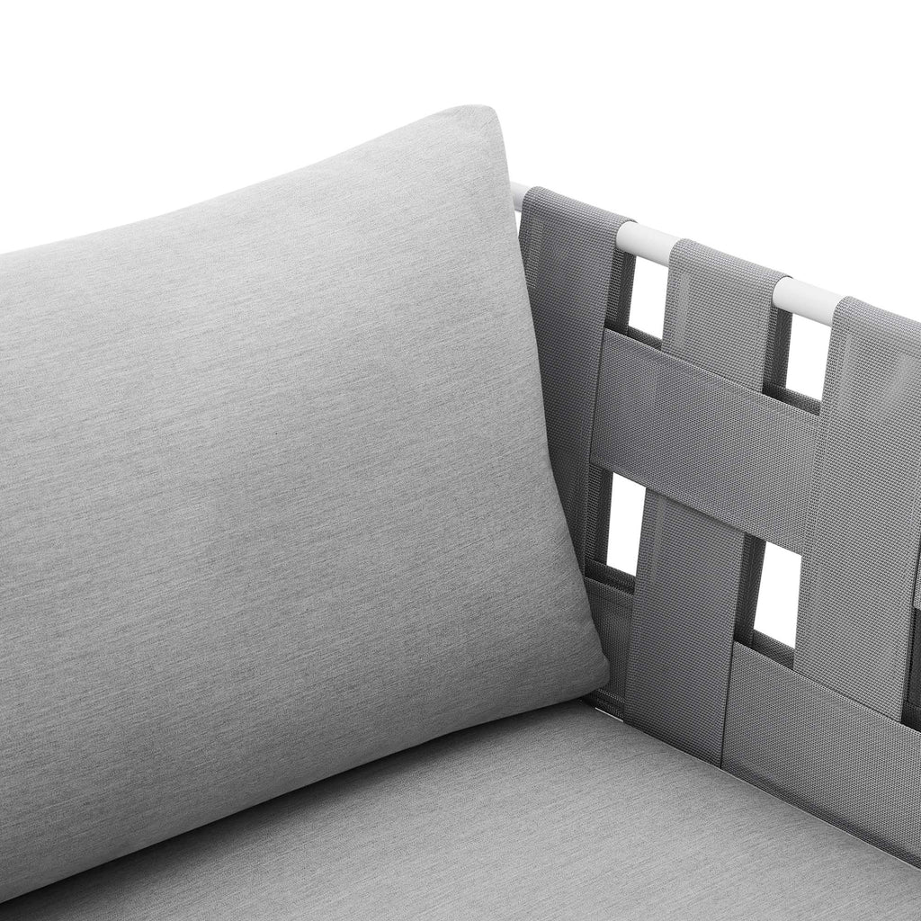 Engage life with Harmony Outdoor Patio Armchair. Enjoy casual conversation under the open sky with an all-weather waterproof outdoor chair from a versatile furniture set that delivers an exceptional outdoor porch, patio, balcony or garden experience. An exceptional modern outdoor furniture set that exceeds expectations, Harmony Patio Armchair comes with silk polyester seat back weave, square powder coated aluminum bases, Sunbrella� cushions, and non-marking foot caps. An outside sofa that arranges according to the spontaneous needs of your guests, set your sights on open and inspired moments with the Harmony Outdoor Patio Collection. Set Includes: One - Harmony Armchair