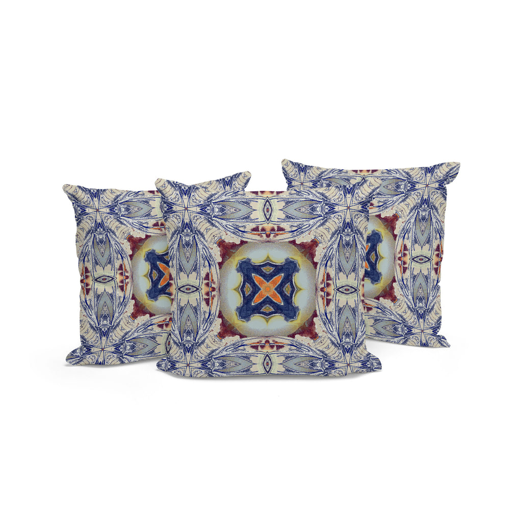 Add an air of fashion to your room and rejuvenate the space with this cute and fashionable set of three 16-inch x 16-inch blue and gray blown seam floral indoor outdoor throw pillow. The blue and gray coloring of the extremely durable and long lasting polyester pillows will add dimension and texture to your space. Durable and easy to care for this pillow is designed to withstand the elements and still look great. Decorative throw pillows add some pizazz but can also be comfy and supportive when you are lounging. 16-inch H x 16-inch W x 5-inch D
