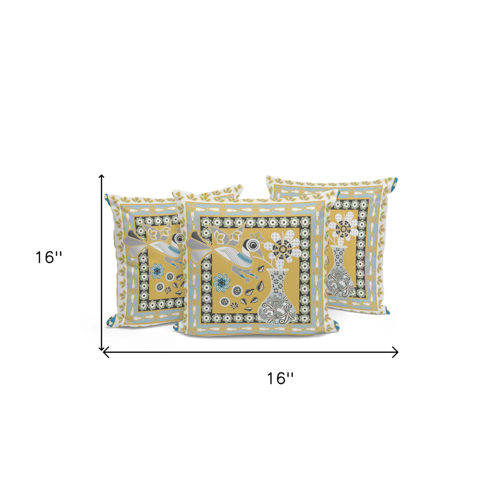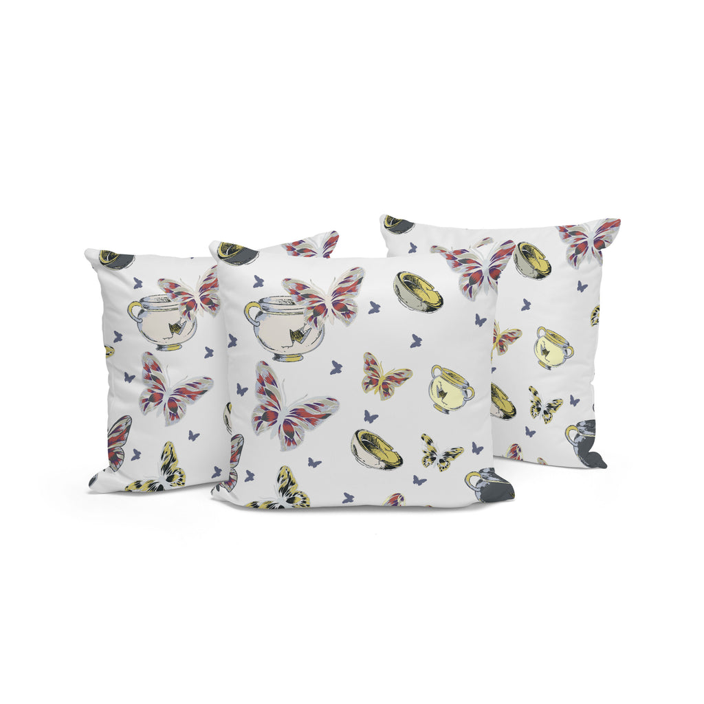 Set of Three 16" X 16" Blue and White Butterfly Blown Seam Animal Print Indoor Outdoor Throw Pillow