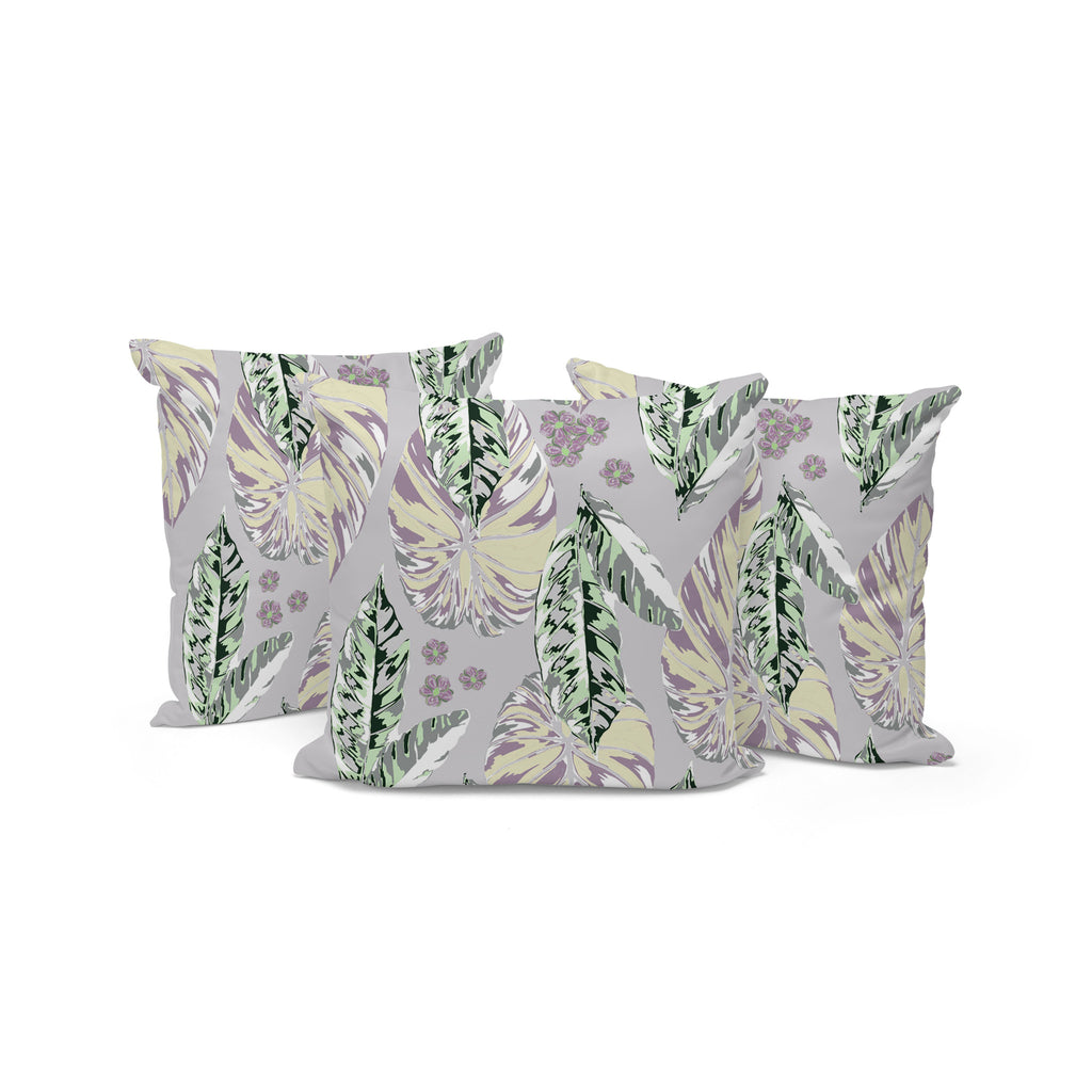Set of Three 16" X 16" Gray and Purple Botanical Indoor Outdoor Throw Pillow