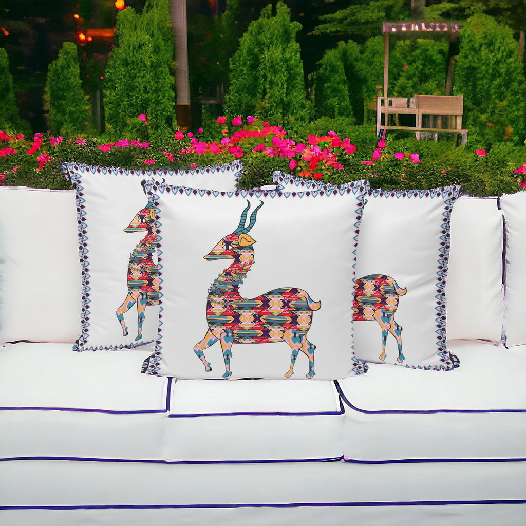 Set of Three 16" X 16" Red and White Deer Indoor Outdoor Throw Pillow