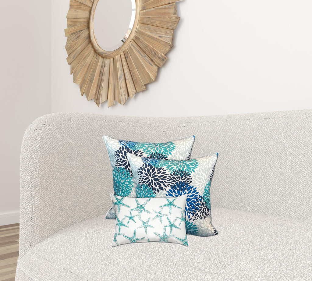 Set Of Three 19" X 19" Blue And White Zippered Floral Throw Indoor Outdoor Pillow Cover