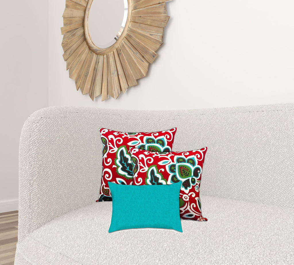 The set of three 19" x 19" turquoise and green zippered floral throw indoor outdoor pillow cover is the perfect decorative accessory for your home. The turquoise and green coloring of the extremely durable and long lasting polyester pillow covers will add dimension and texture to your space. Super soft and built to hold its shape, this no fill pillow is a great option. Durable and easy to care for this pillow is designed to withstand the elements and still look great. Decorative throw pillows add some pizazz but can also be comfy and supportive when you are lounging. 19" H x 19" W x 1" D