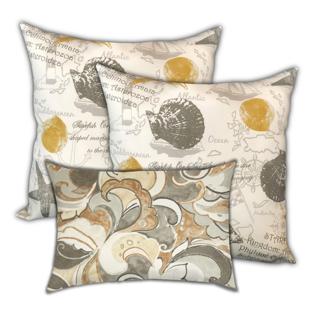 The perfect complement to your sofa, favorite chair, or bed, this set of three 19" x 19" white and beige seashells zippered nautical throw indoor outdoor pillow cover is a great decorative accent. Ultra durable white and beige polyester has been used to make this decorative pillow cover set a beautiful look that will stand the test of time. This soft no fill pillow not only is decorative but made to be comfy and cozy all day long. Will add some color and dimension to your space indoors or out. A great decorative accessory for your favorite chair or to accent your sofa. 19" H x 19" W x 1" D