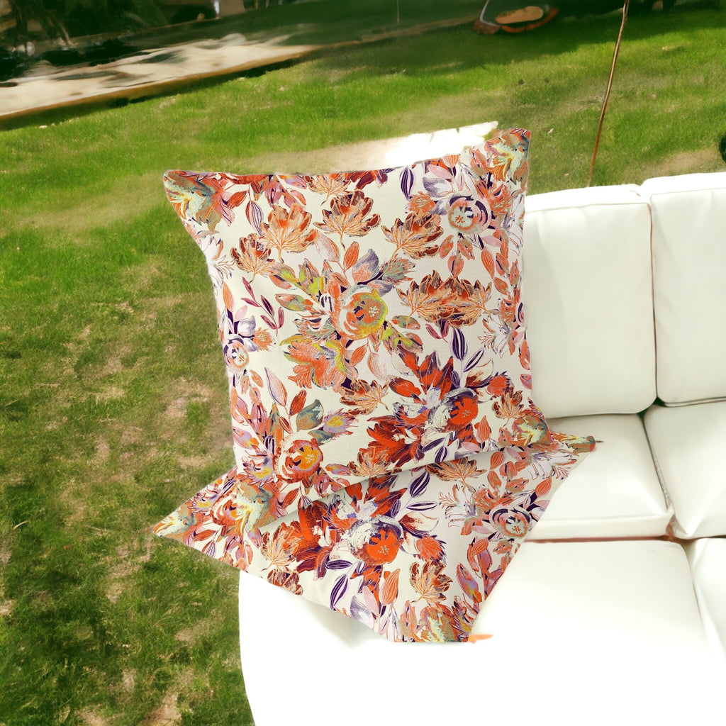 Set of Two 16" X 16" Beige and Red Blown Seam Floral Indoor Outdoor Throw Pillow