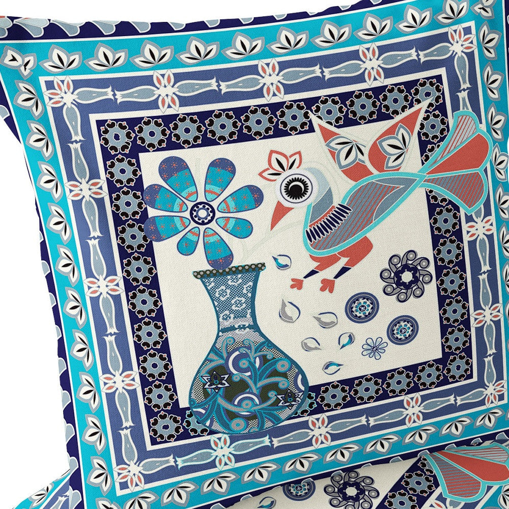 floral indoor outdoor throw pillow, outdoor throw pillow, indoor outdoor throw pillow, blue peacock blown seam floral, seam floral indoor outdoor throw