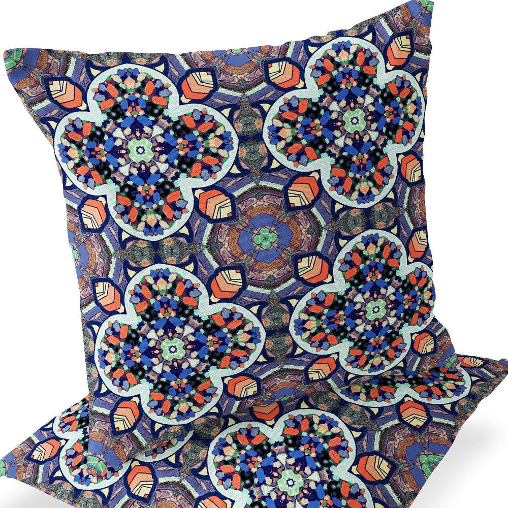 This set of two 16-inch x 16-inch blue and black blown seam floral indoor outdoor throw pillow will add a beautiful decorative accent to your decor. Ultra durable blue and black polyester has been used to make this decorative pillow set a beautiful look that will stand the test of time. Durable and easy to care for this pillow is designed to withstand the elements and still look great. Decorative pillows are a great way to change up the look and feel of your space easily and quickly. 16-inch H x 16-inch W x 5-inch D