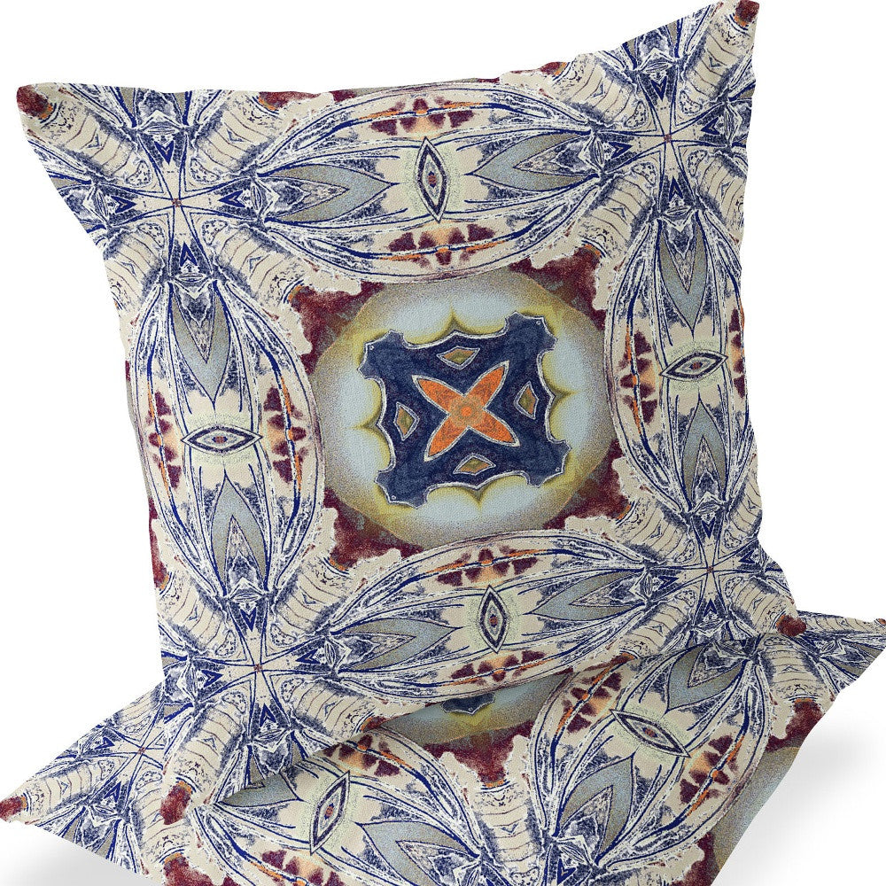 Unique and decorative, this comfortable set of two 16-inch x 16-inch blue and gray blown seam floral indoor outdoor throw pillow will leave a lasting impression. This blue and gray colored decorative pillow set is made from high grade polyester that is durable and soft to the touch. A great decorative accessory to decorate indoors or out. Decorative throw pillows add some pizazz but can also be comfy and supportive when you are lounging. 16-inch H x 16-inch W x 5-inch D