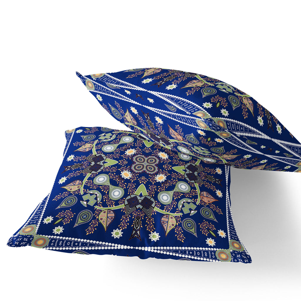 Bring a bit of fashion and zip to your space with this eye-catching and comfy set of two 16-inch x 16-inch blue and green blown seam paisley indoor outdoor throw pillow. This blue and green colored decorative pillow set is made from high grade polyester that is durable and soft to the touch. Durable and easy to care for this pillow is designed to withstand the elements and still look great. Decorative pillows are a great way to change up the look and feel of your space easily and quickly. 16-inch H x 16-inch W x 5-inch D