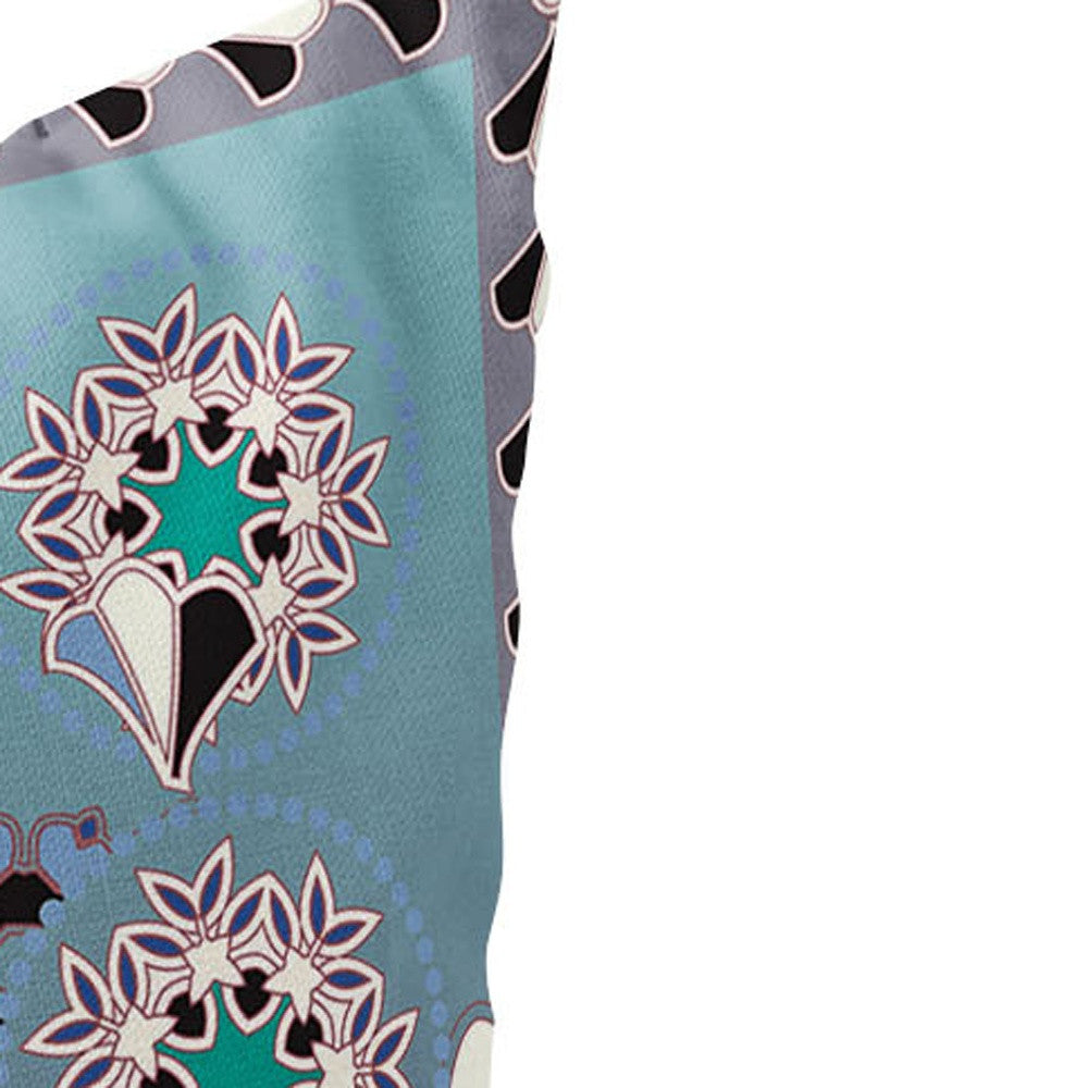 floral indoor outdoor throw pillow, outdoor throw pillow, indoor outdoor throw pillow, peacock blown seam floral indoor, 16" X 16" blue purple peacock