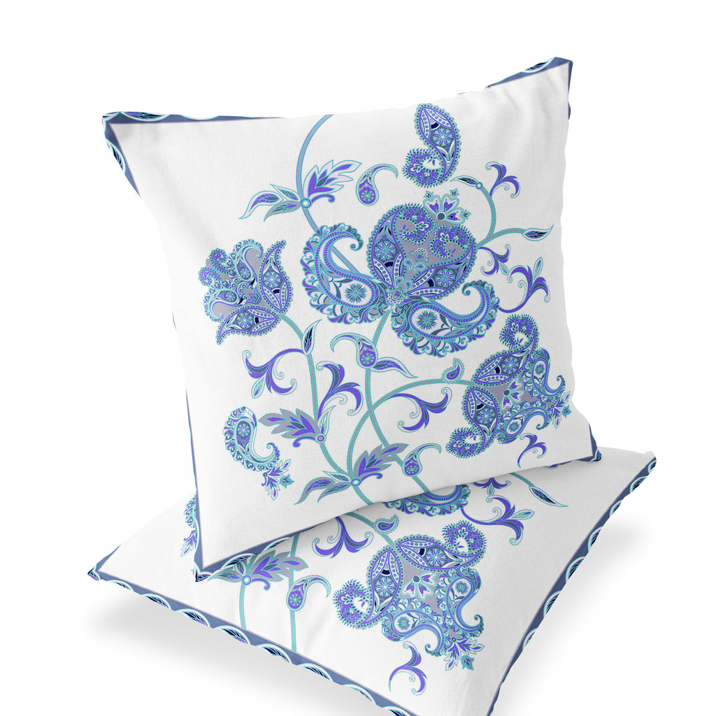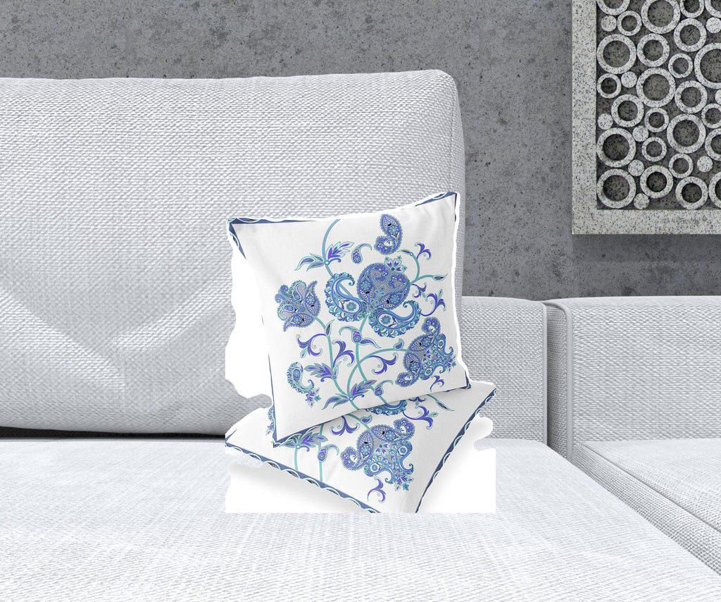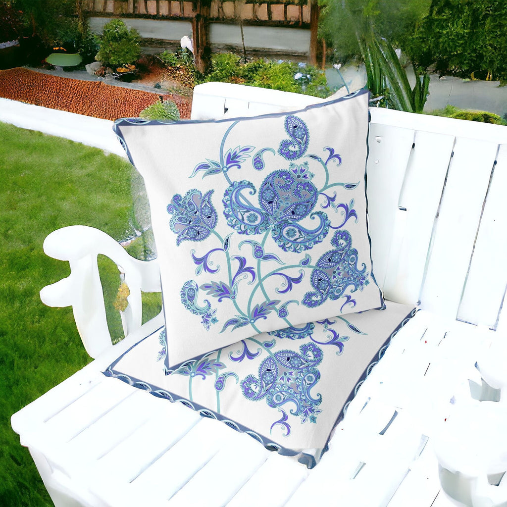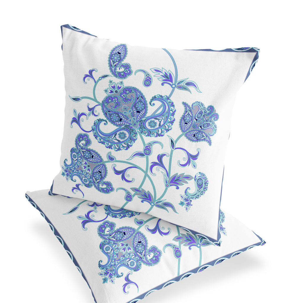 Set of Two 16" X 16" Blue and White Botanical Indoor Outdoor Throw Pillow