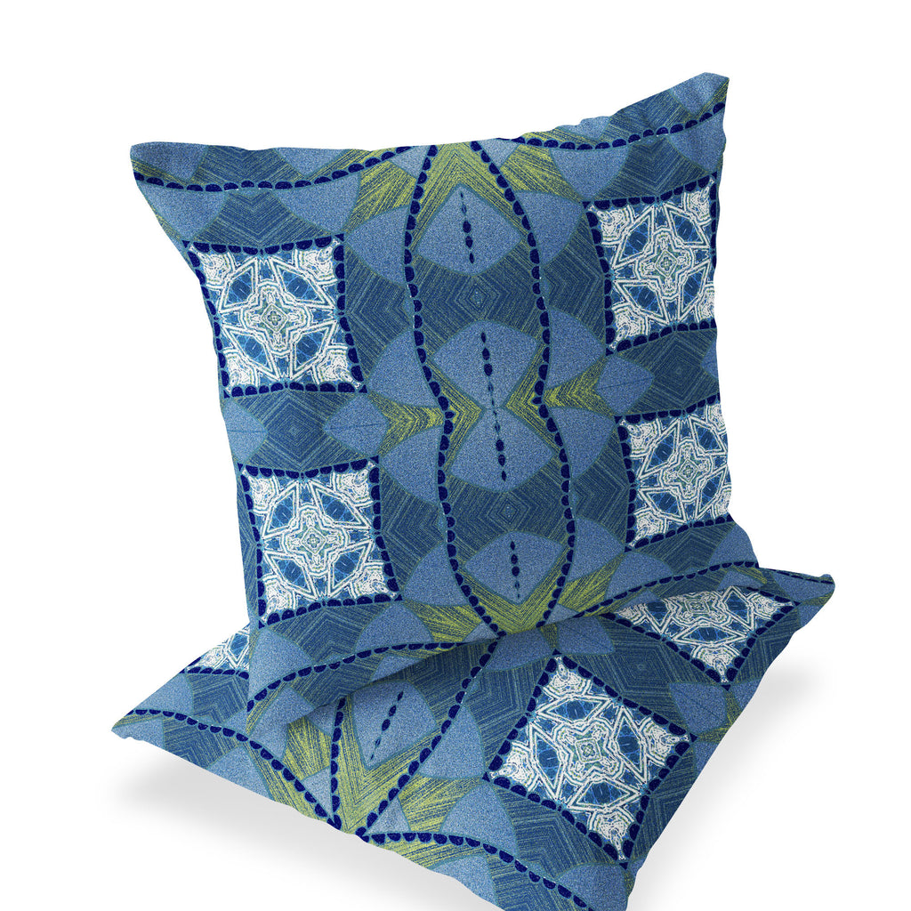 Set of Two 16" X 16" Blue and Yellow Blown Seam Eclectic Indoor Outdoor Throw Pillow