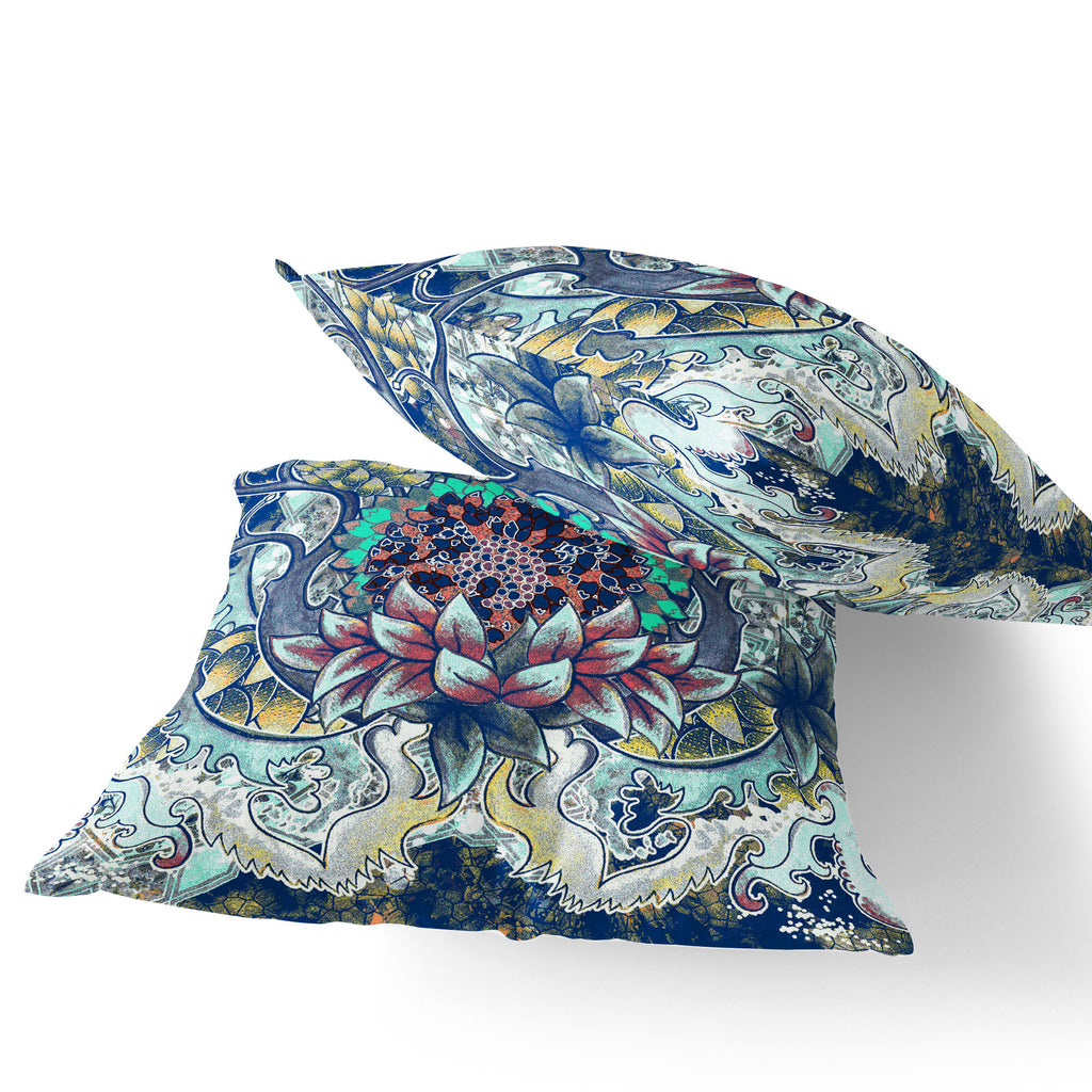 Add an air of fashion to your room and rejuvenate the space with this cute and fashionable set of two 16-inch x 16-inch blue and yellow blown seam floral indoor outdoor throw pillow. These blue and yellow hued pillows represent quality construction, expertly made from durable polyester that is not only long lasting but super soft to the touch as well. Durable and easy to care for this pillow is designed to withstand the elements and still look great. A great decorative accessory for your favorite chair or to accent your sofa. 16-inch H x 16-inch W x 5-inch D