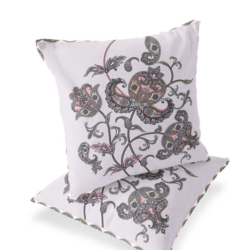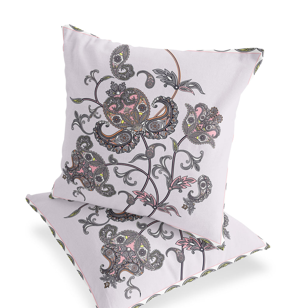 Set of Two 16" X 16" Gray and White Botanical Indoor Outdoor Throw Pillow