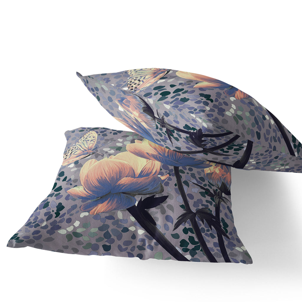 Set of Two 16" X 16" Gray and Yellow Butterfly Blown Seam Floral Indoor Outdoor Throw Pillow