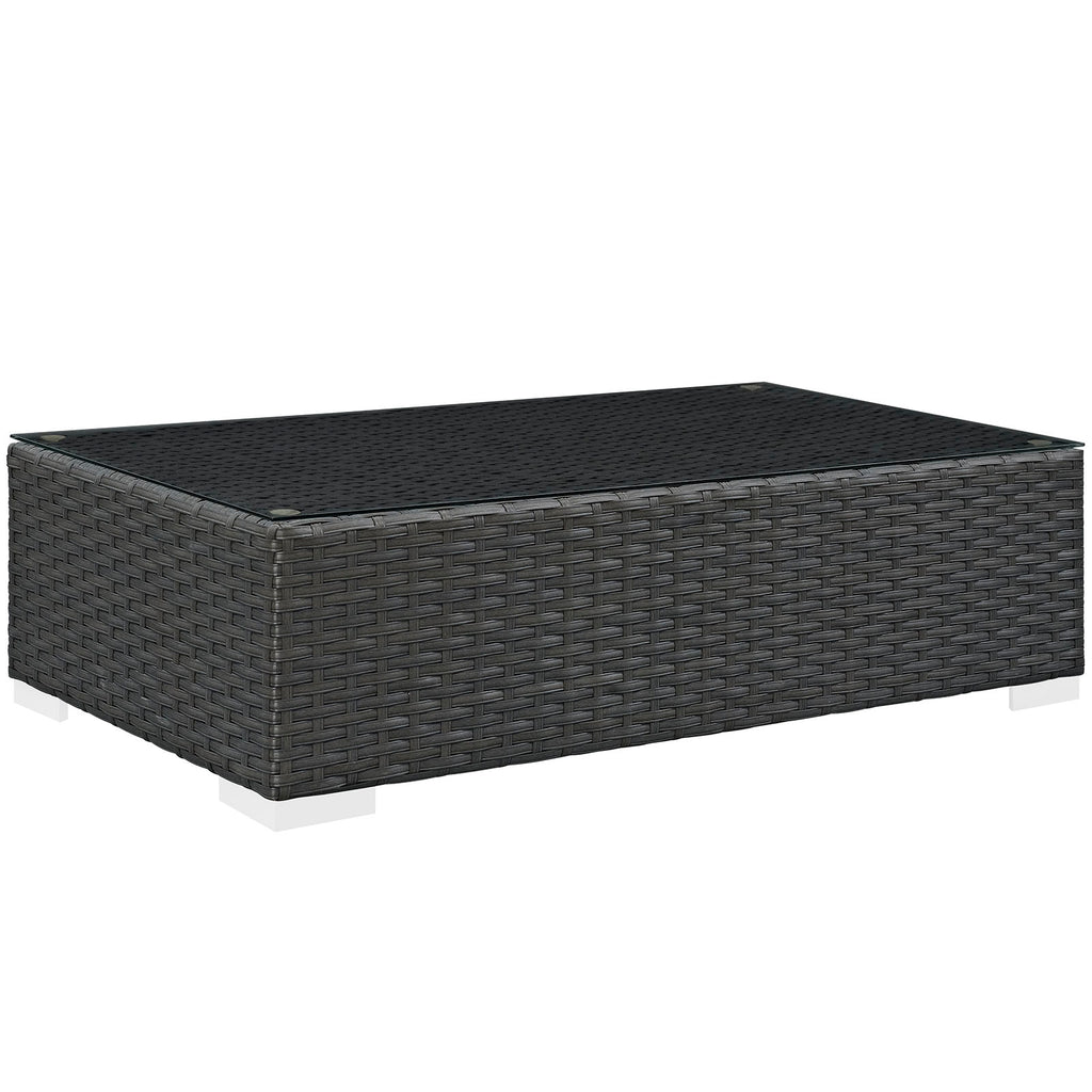 Outfit your patio with an imaginative Sojourn Outdoor Patio Furniture series. The Sojourn Patio Outdoor Collection offers a robust seating experience that easily rearranges according to usage. Outfitted with industry-leading Sunbrella� fabric cushions, synthetic rattan weave, UV protection, powder-coated aluminum frame, immensely enjoy your outdoor time with an outdoor conversation set that enhances patio, backyard, or poolside areas. This installment of the series is an Outdoor Patio Furniture Set. Set Includes: One - Sojourn Rattan Outdoor Patio Coffee Table One - Sojourn Rattan Outdoor Patio Ottoman One - Sojourn Rattan Outdoor Patio Sofa