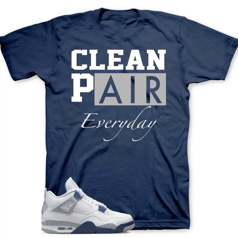 Shirt To Match Jordan 4 Midnight Navy - Clean Pair Sneaker Tees Cotton Casual Crew Neck V-Neck Slim-fitting Floral Striped Black Breathable Menswear Shortsleeve Clothing Short Outdoor
