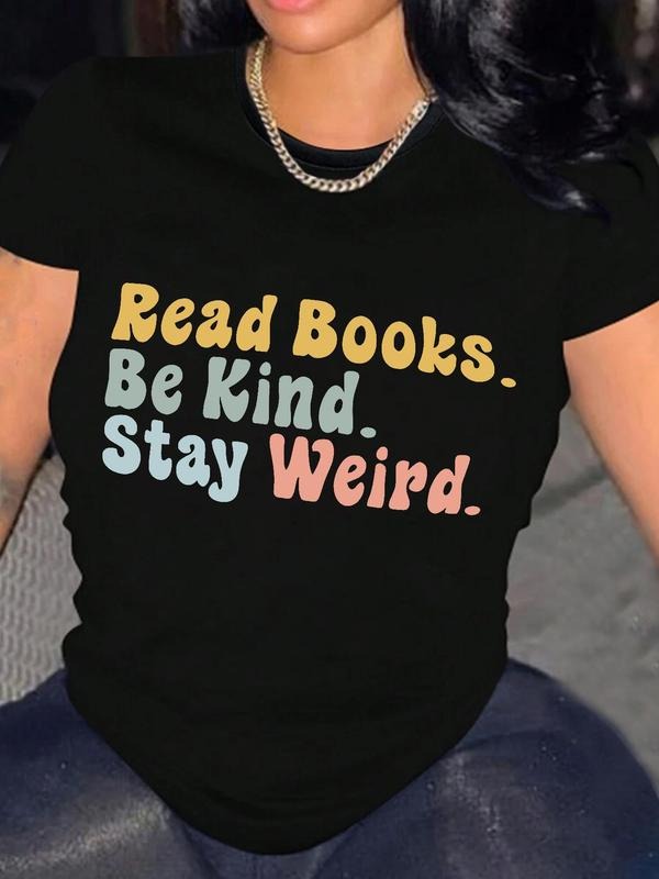 Women's Slogan Print Round Neck Tee, Fashion Casual Crew Neck T-shirt for Daily Holiday Vacation Outdoor Wear, Ladies Clothes for All Seasons