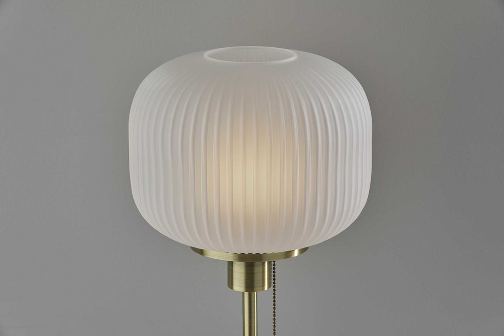 Add a classy touch of mid-century design to your space with this Striped Glass Glow pendant. A frosted ribbed glass shade emits a beautiful ambient glow when lit. Stagger multiple fixtures over a dining space for a statement making ceiling display or hang in several in a row over a kitchen counter to illuminate the cooking area. Antique brass accents and a black fabric cord add to the clean, modern design. All lighting product is either UL or ETL listed, meaning that it has been tested and approved to meet the government-regulated safety standards for the USA.