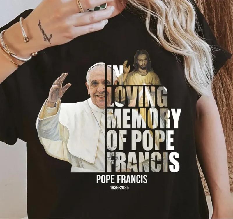 In Loving Memory of Pope Francis Rest In Peace Pope Tribute with Cross Long Sleeve Religious Sweater Catholic Shirt, RIP Pope Francis Shirt, Memorial Tribute Tee