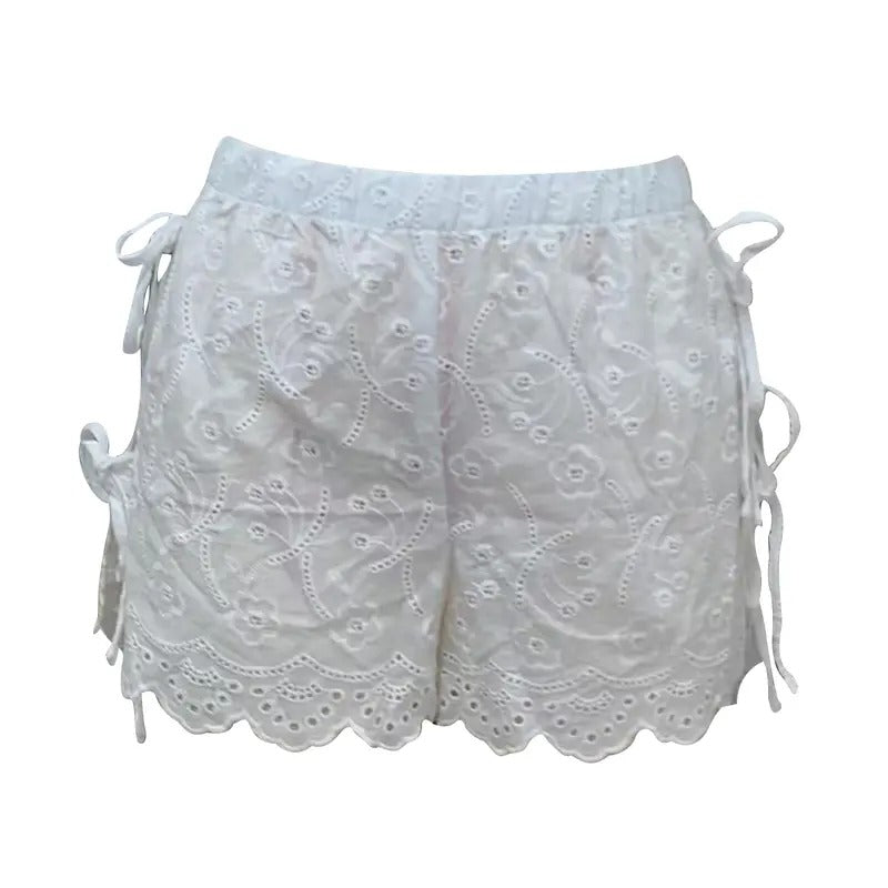 Women Summer Eyelet Lace Shorts Casual Side Tie up Cutout Elastic Short Pants for Vacation Beach Club Streetwear Fashion Womenswear