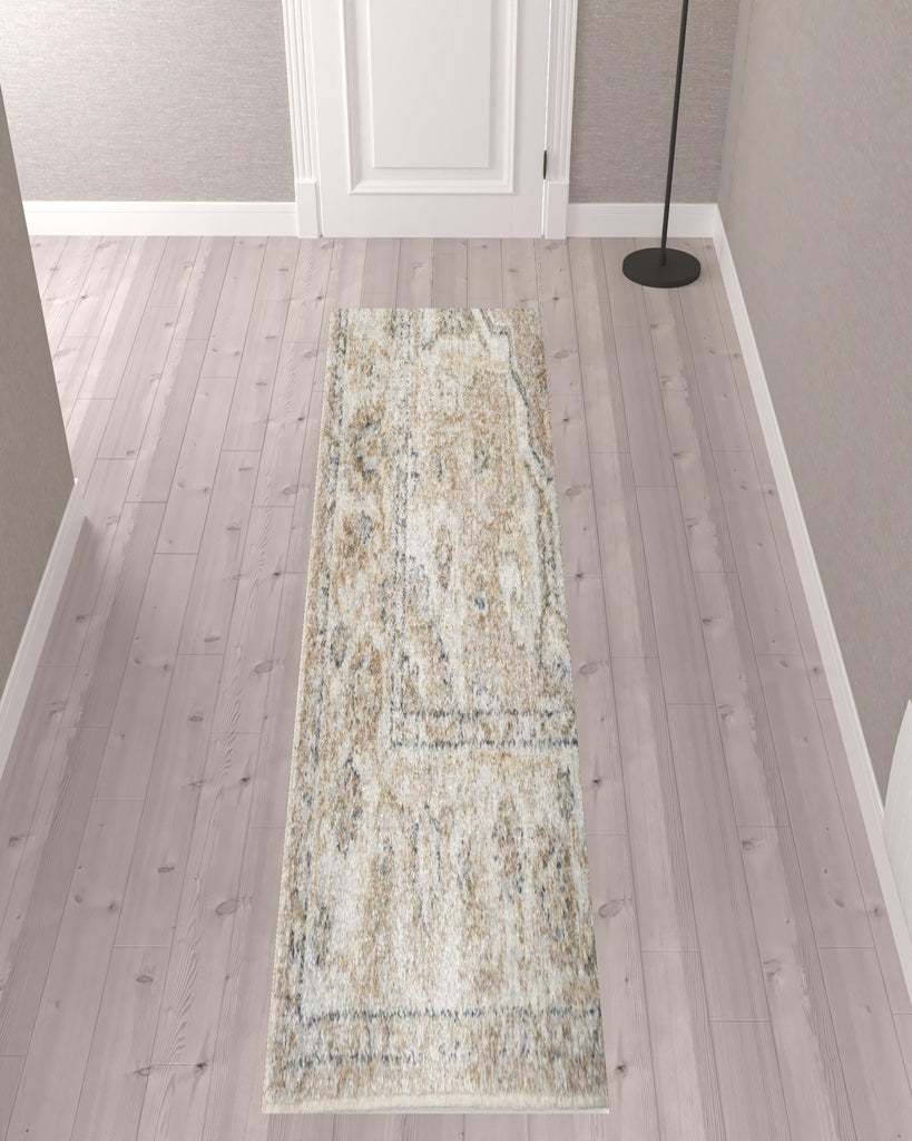 power loom washable runner rug, loom washable runner rug, washable runner rug, oriental power loom washable runner, beige oriental power loom washable