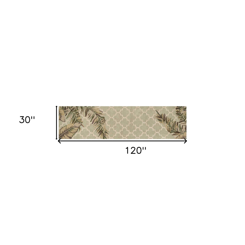 2' X 10' Sage Tropical Leaves Mosaic Wool Indoor Runner Rug