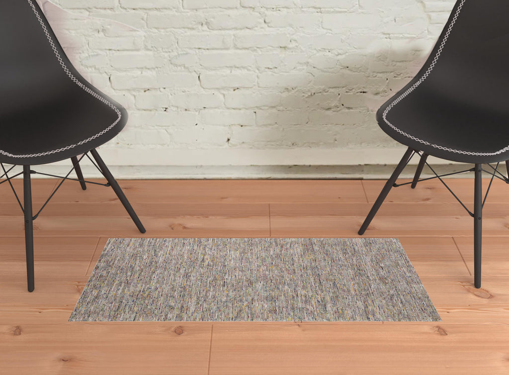 2' X 3' Grey Blue And Yellow Wool Hand Loomed Handmade Area Rug