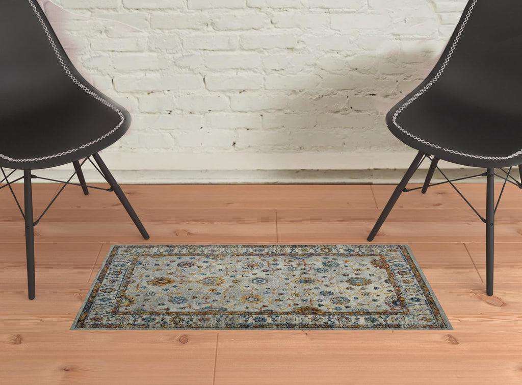 2' x 3' Orange and Ivory Floral Power Loom Area Rug