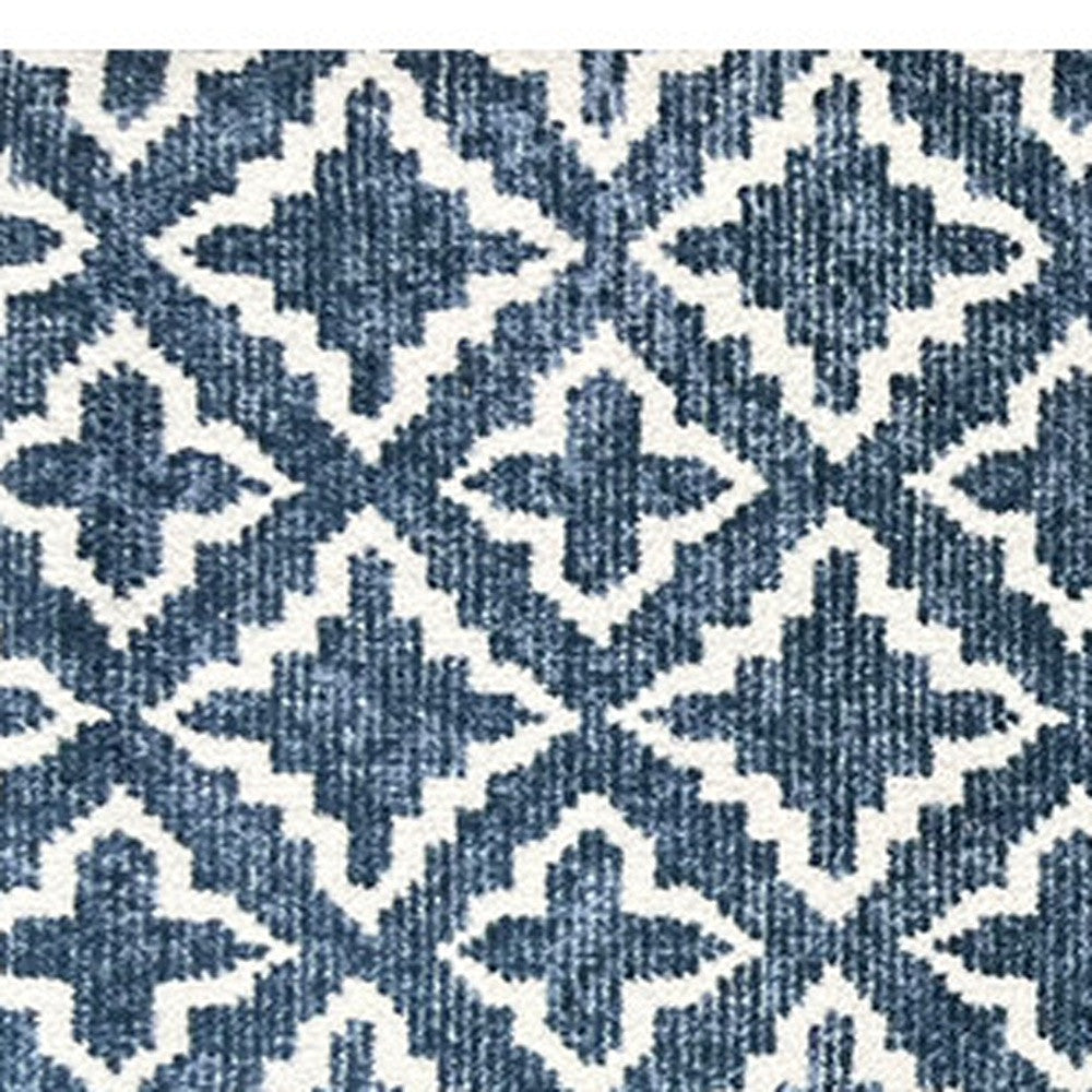 Add great coloration and comfortable texture to your space with this 2' x 6' navy blue moroccan machine tufted runner rug with uv protection. This runner shaped rug features a moroccan design in navy blue to give it visual interest. A classic shape marries with good looking design for your space Ideal for spaces with kids and pets, this rug is stain resistant to help repel stains and spilled liquids. Area Rugs help to give warmth and sense of home to your space. 0.25" H x 27.5" W x 75" D