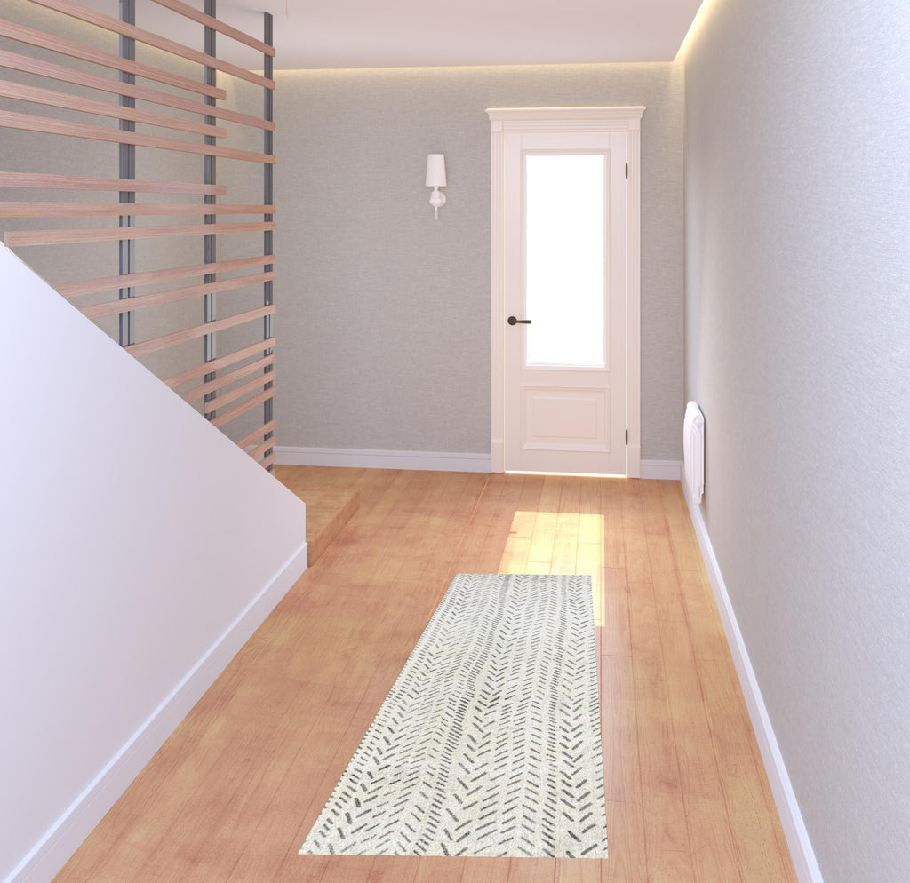 This 2' x 6' taupe abstract machine tufted runner rug with uv protection, is a great way to add warmth to a room. This runner shaped rug features a abstract design in taupe to give it visual interest. A classic shape marries with good looking design for your space Ideal for spaces with kids and pets, this rug is stain resistant to help repel stains and spilled liquids. Place this area rug against a hardwood or tile floor and it will enliven your living space with style and sophistication. 0.25" H x 27.5" W x 75" D