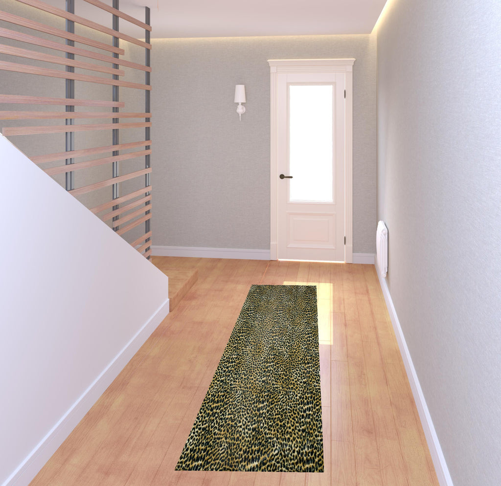 Add some artistry to your room with this 2' x 8' black and gold animal print shag handmade non skid runner rug. This runner shaped rug features a animal print design in gold to give it visual interest. A classic shape marries with good looking design for your space The retro shag construction of this luxurious rug will provide a soft and comfortable barrier to color tile and hardwood floors. Area Rugs help to give warmth and sense of home to your space. 0.86" H x 24" W x 90" D