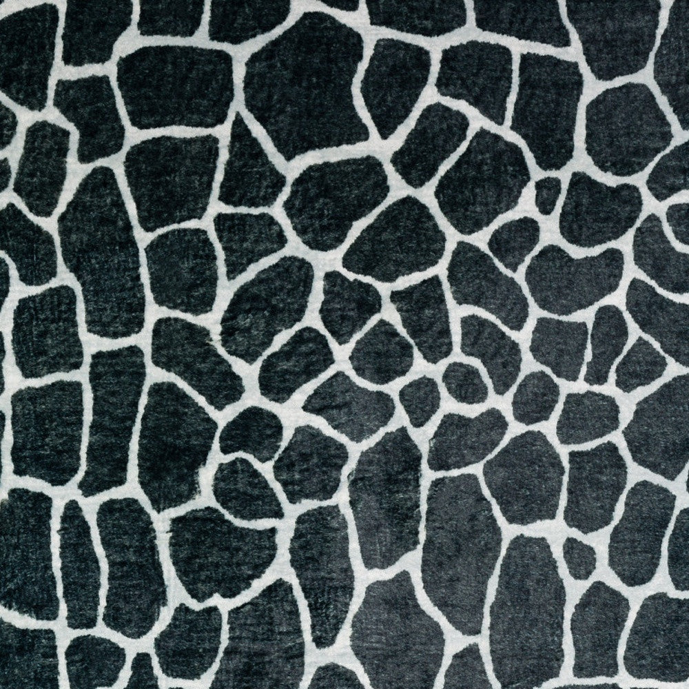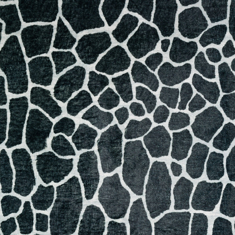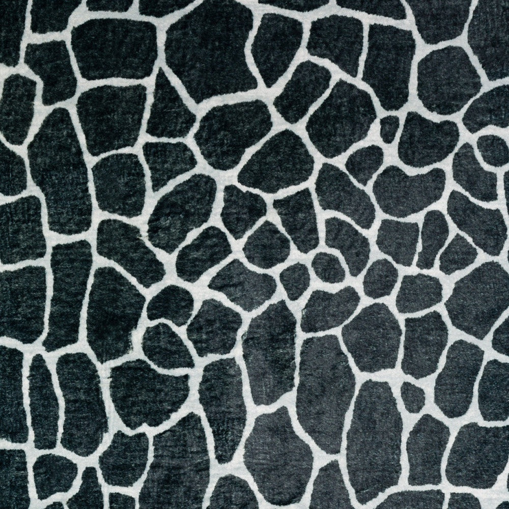 2' X 8' Black and White Croc Print Shag Handmade Non Skid Runner Rug