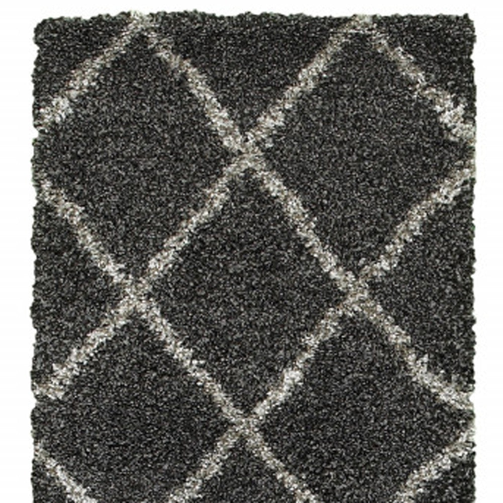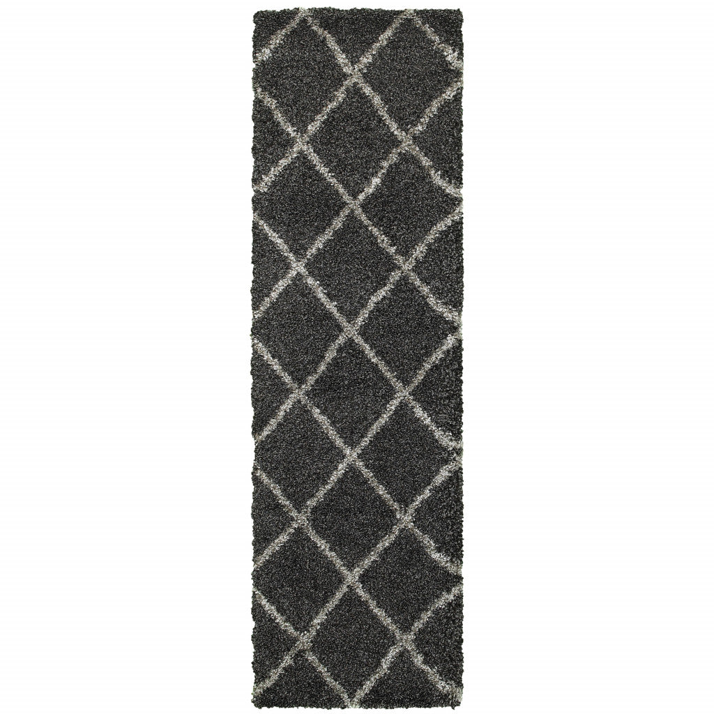 Add some artistry to your room with this 2' x 8' charcoal and grey geometric shag power loom stain resistant runner rug. This runner shaped rug features a geometric design in charcoal and grey to give it visual interest. A classic shape marries with good looking design for your space Ideal for spaces with kids and pets, this rug is stain resistant to help repel stains and spilled liquids. The retro shag construction of this luxurious rug will provide a soft and comfortable barrier to color tile and hardwood floors. Area Rugs help to give warmth and sense of home to your space. 1.96" H x 26.77" W x 90.55" D