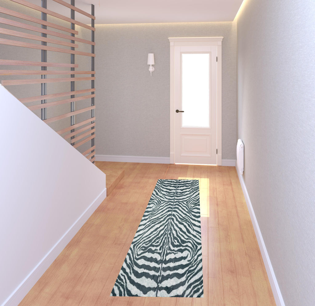 2' X 8' Grey Zebra Print Shag Handmade Non Skid Runner Rug