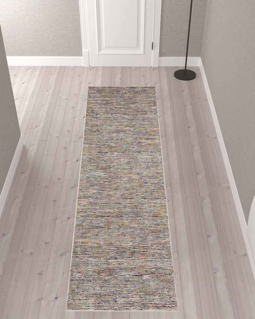 This 3' x 10' multi-color wool hand loomed runner rug, is a great way to add warmth to a room. Crafted by skilled artisans, this hand loomed rug is genuine and unique. No two will be exactly alike. Place this area rug against a hardwood or tile floor and it will enliven your living space with style and sophistication. 0.4" H x 30" W x 120" D