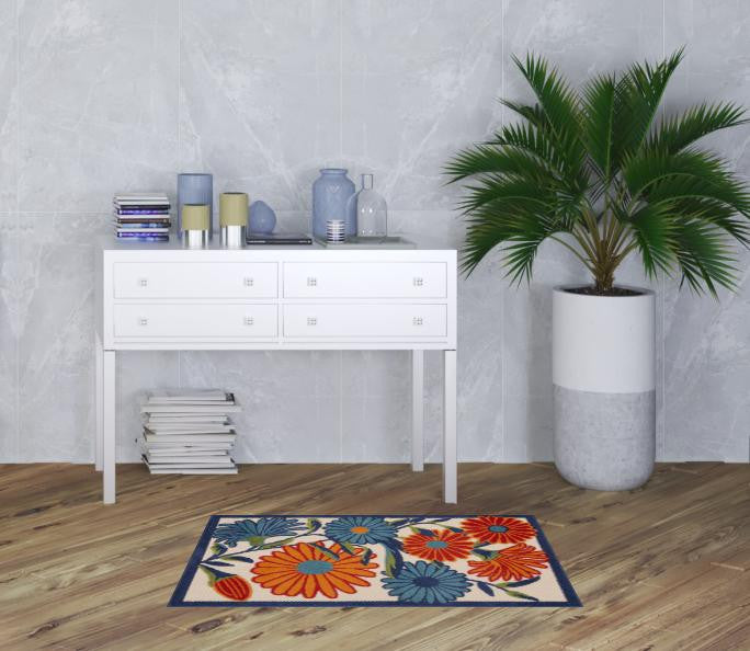 3' X 4' Blue and Orange Floral Power Loom Area Rug