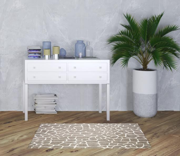 3' X 5' Beige Giraffe Print Shag Handmade Non Skid Area Rug