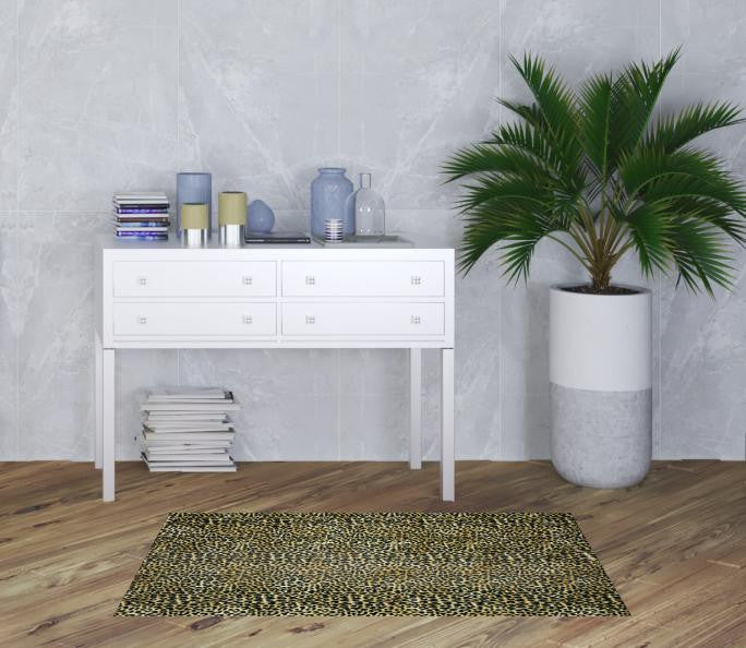 3' X 5' Black and Gold Leopard Print Shag Handmade Non Skid Area Rug