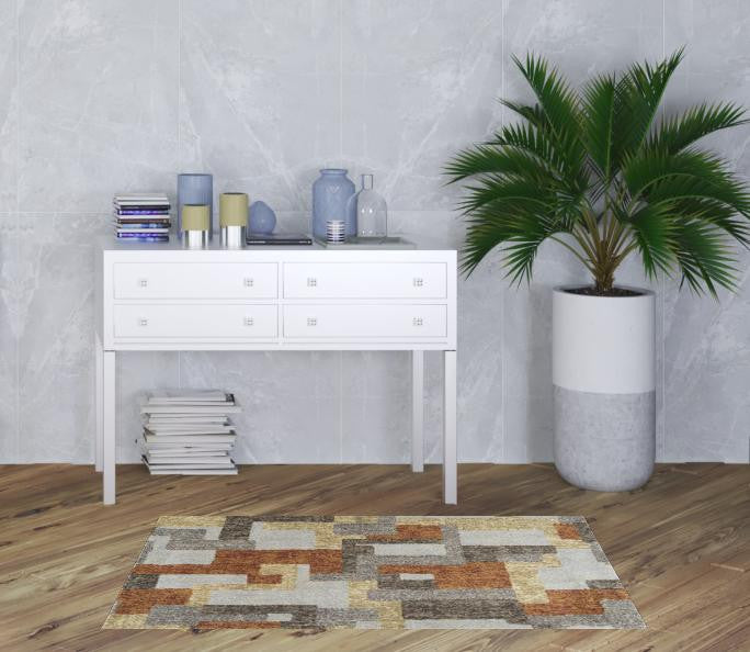 3' X 5' Grey And Brown Geometric Area Rug