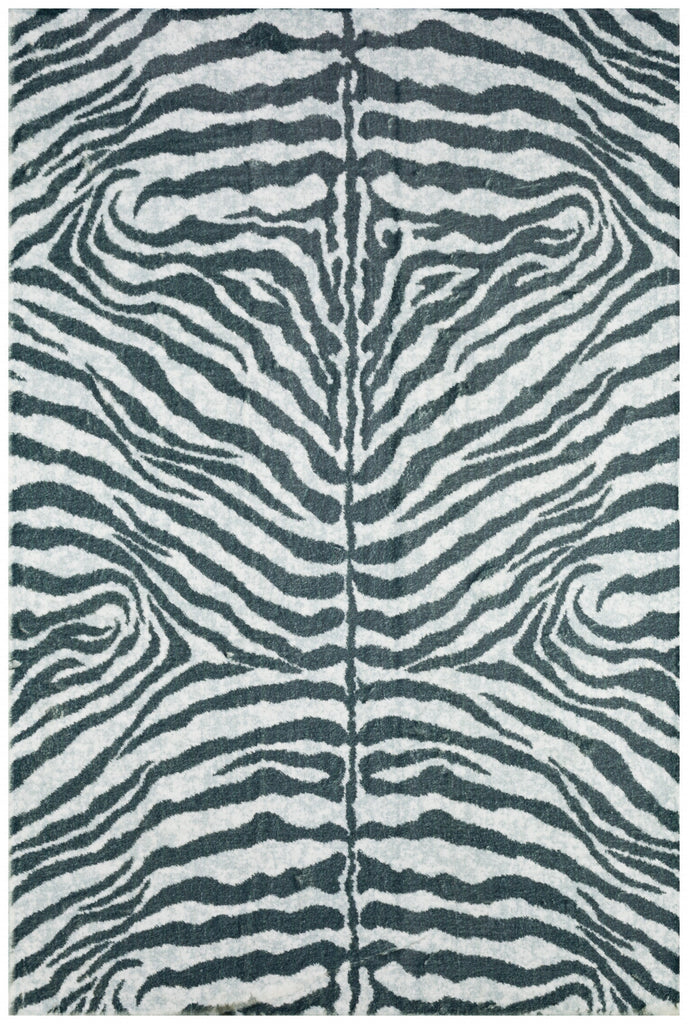 3' X 5' Grey Zebra Print Shag Handmade Non Skid Area Rug