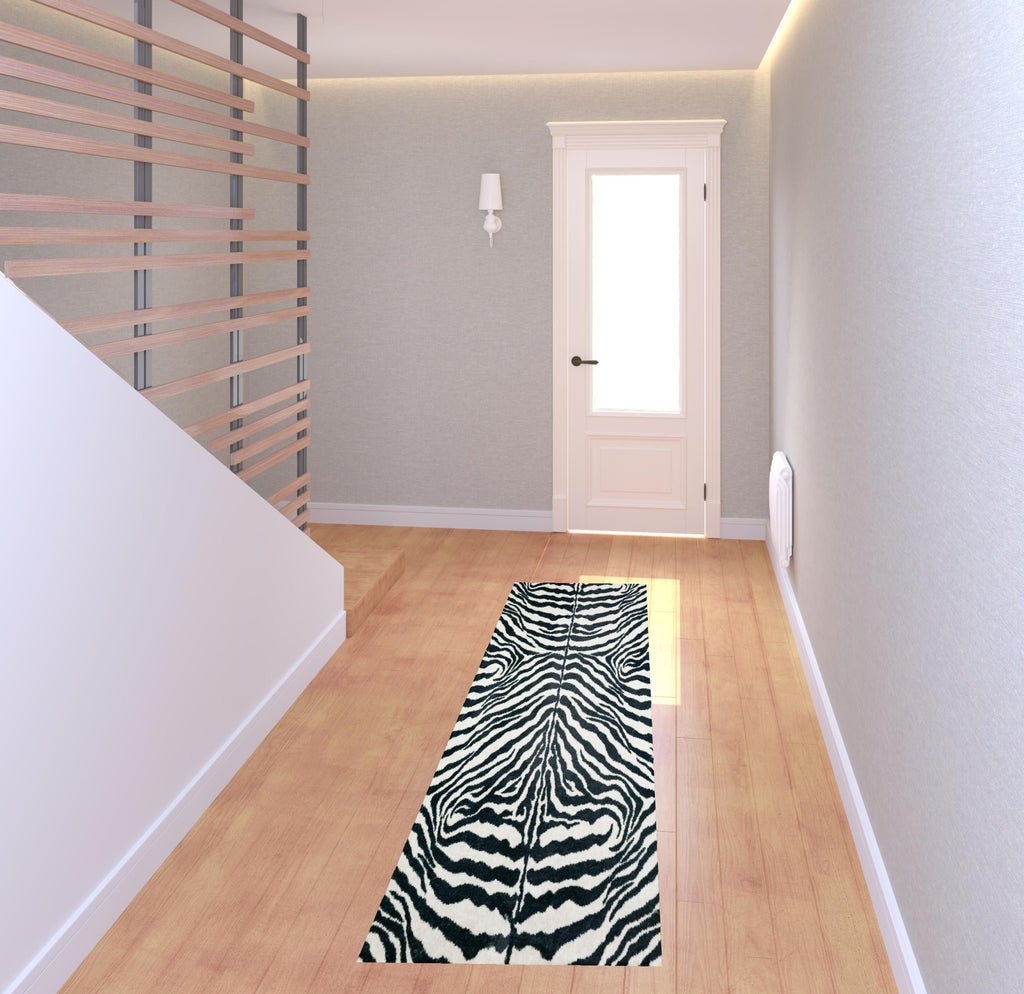 This 3' x 8' Black and White Zebra Print Shag Handmade Non Skid runner rug, is a great way to add warmth to a room. This runner shaped rug features a animal print design in black to give it visual interest. A classic shape marries with good looking design for your space The coloration of this rug infuses an updated and modern vibe into your space. The retro shag construction of this luxurious rug will provide a soft and comfortable barrier to color tile and hardwood floors. Place this area rug against a hardwood or tile floor and it will enliven your living space with style and sophistication. 0.86" H x 24" W x 90" D