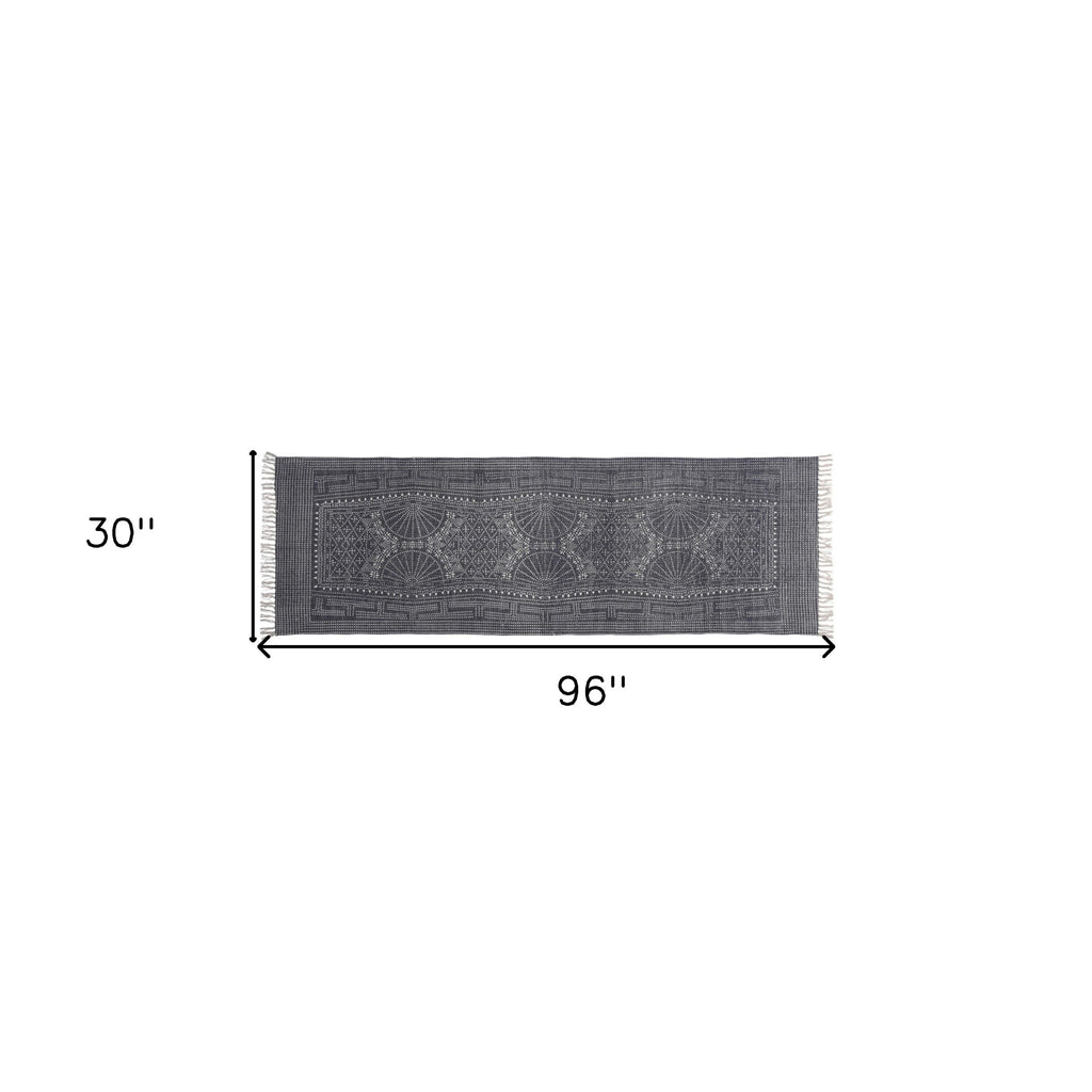 Influenced by cultures and traditional folk crafts, this Blue and Ivory Batik Runner Rug emphasizes rich artworks and intricate patterns to be a stunning addition to any room. Blending in the two sophisticated color tones, this rug flaunts centuries-old handprinted batik designs in ivory brimming over a navy blue background for visual harmony. The unique process of masking dyes and printing patterns adds a traditional appeal to the entire piece. Skilfully crafted with cotton, this rug is very easy to clean and provides a comfortable feel under the feet. If you lean towards the richness of the traditional styling, this alluring runner rug will be a worthy addition to uplift the aesthetics of your interior. 0.1” x 96” x 30”
