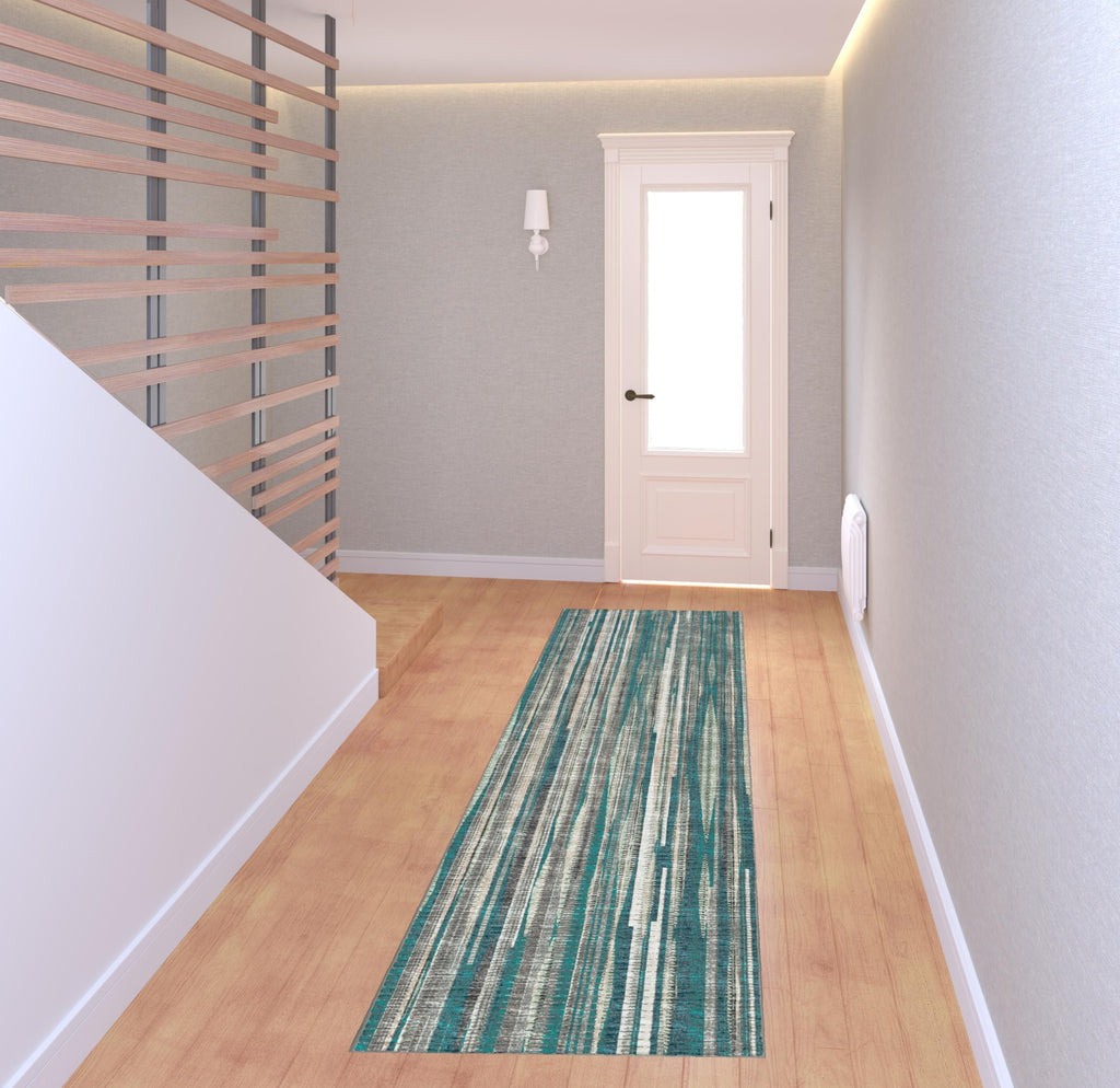 This 3' x 8' blue ombre tufted handmade runner rug, is a great way to add warmth to a room. This runner shaped rug features a ombre design in blue to give it visual interest. A classic shape marries with good looking design for your space Place this area rug against a hardwood or tile floor and it will enliven your living space with style and sophistication. 0.43" H x 30" W x 96" D